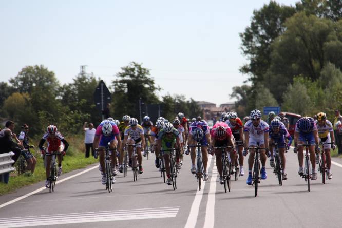 giornata fresca .. stupenda .. un po' di vento .. pronti via 3 km vento a favore poi curva a dx e inizia il controvento .. primo giro subito all'attacco scatti e controscatti e per un bel pezzo siamo tre o quattro ma con poco vantaggio .. al primo passaggio ci riprendono e i migliori contrattaccano .. riesco a rifiatre e riparto con altri 7 o 8 ... insieme a me c'e un generosissimo e pimpante Alby Sibilla che mi aiutera' non poco a riprendere la testa della gara .. rientrano gli ultimi due tra cui il Bianchi e restiamo 17 .. molti giovani e 5 veterani ..molti della Bortolami ..troppi ... il mio compagno Gianluca nel casino della situazione si e' staccato purtroppo.. e prendiamo il largo .. arriviamo fino a 2 min di vantaggio al 5° giro .. e al suono della campana si rallenta un attimo e da li' a qualche km iniziano gli scatti .. io resto sulle ruote di chi parte senza prendere iniziative .,, e curo i miei vet .. in particolare il Trisca e anche Tota M. .. c'e' anche il Ceruti in grande forma ..